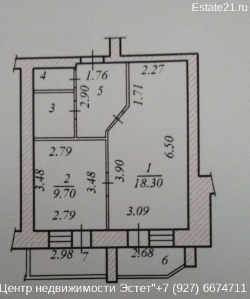 1-комнатная квартира Юрия Гагарина 39, этаж 6 из 7