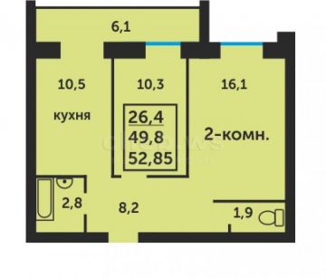 проспект Тракторостроителей позиция 47,2 комн, 56 м2, 10 Этаж
