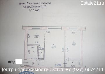 Калинина 102,2 комн, 44 м2, 2 Этаж