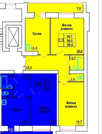 Пирогова 1 корпус 2,2 комн, 67 м2, 10 Этаж