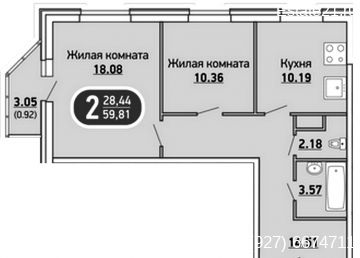 Радужная позиция 2, 2 комн, 59 м2, 8 Этаж 3 180 000 Р.