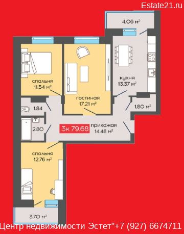 Мичмана Павлова 48/2,3 комн, 78 м2, 6 Этаж