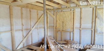 Фундамент ленточный рассчитан на 2 этажа.Дом двух этажный каркасный 6х9,Первый этаж из блоков.Газ и вода проходит рядом с участком.Получено разрешение на строительство.Заключен договор с электросетями.Стройматериалы закуплены для пола.Двери поставлены,окна пока нет.Участок ровный, ухоженный, растут яблони, вишни,идр.Рядом живут соседи.Недалеко Волга и лес.